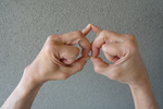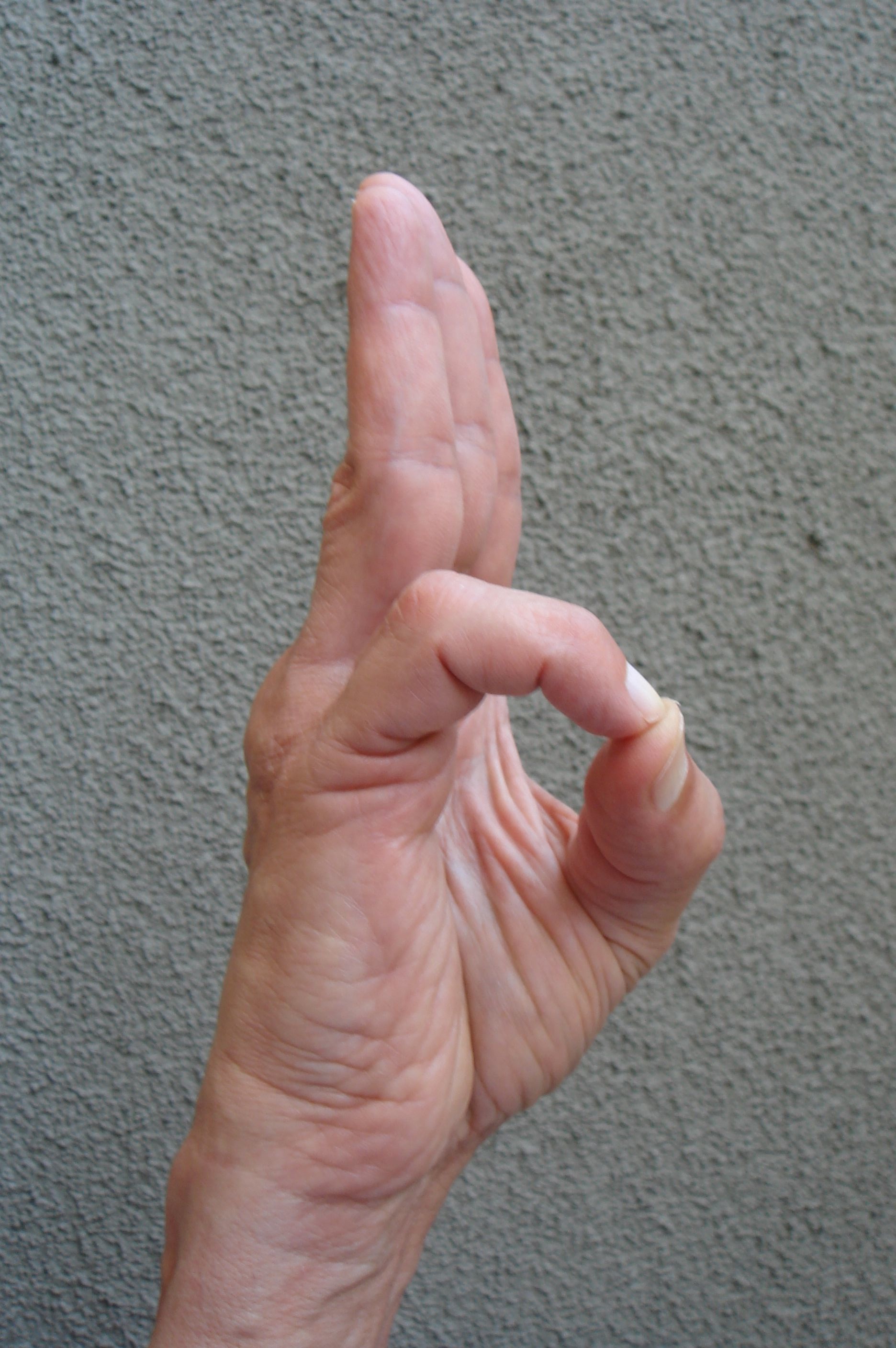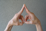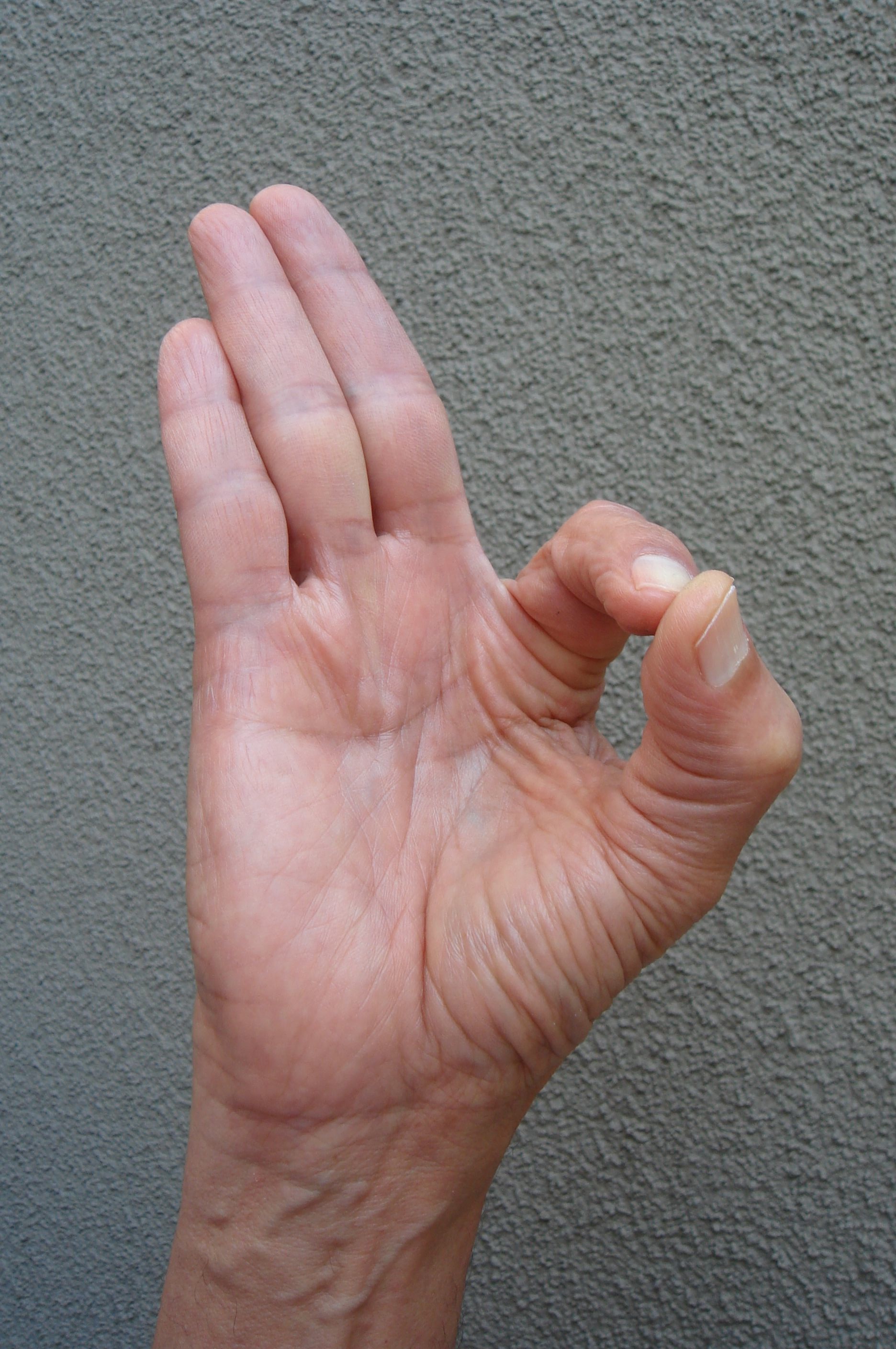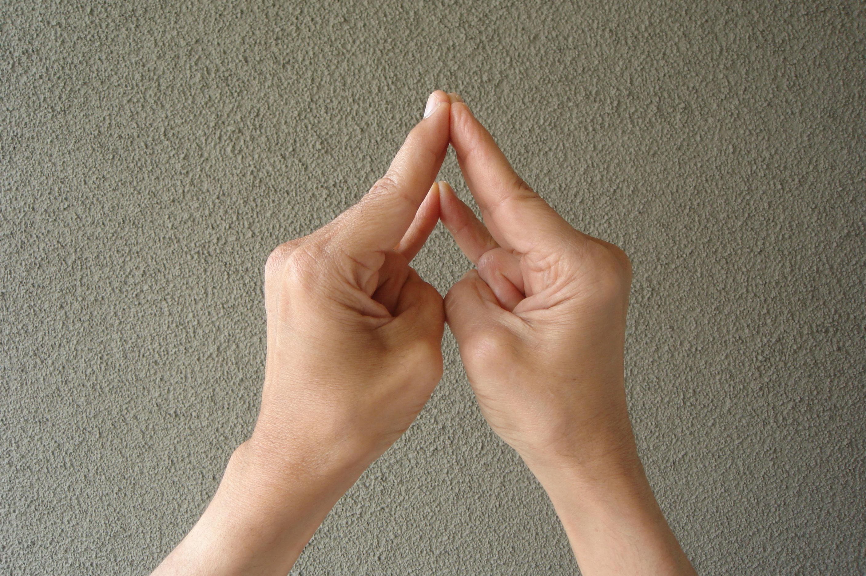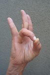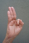 Touch the tip of the thumb to the tip of the index finger, with the other three fingers extended fully and then kept together. Can be