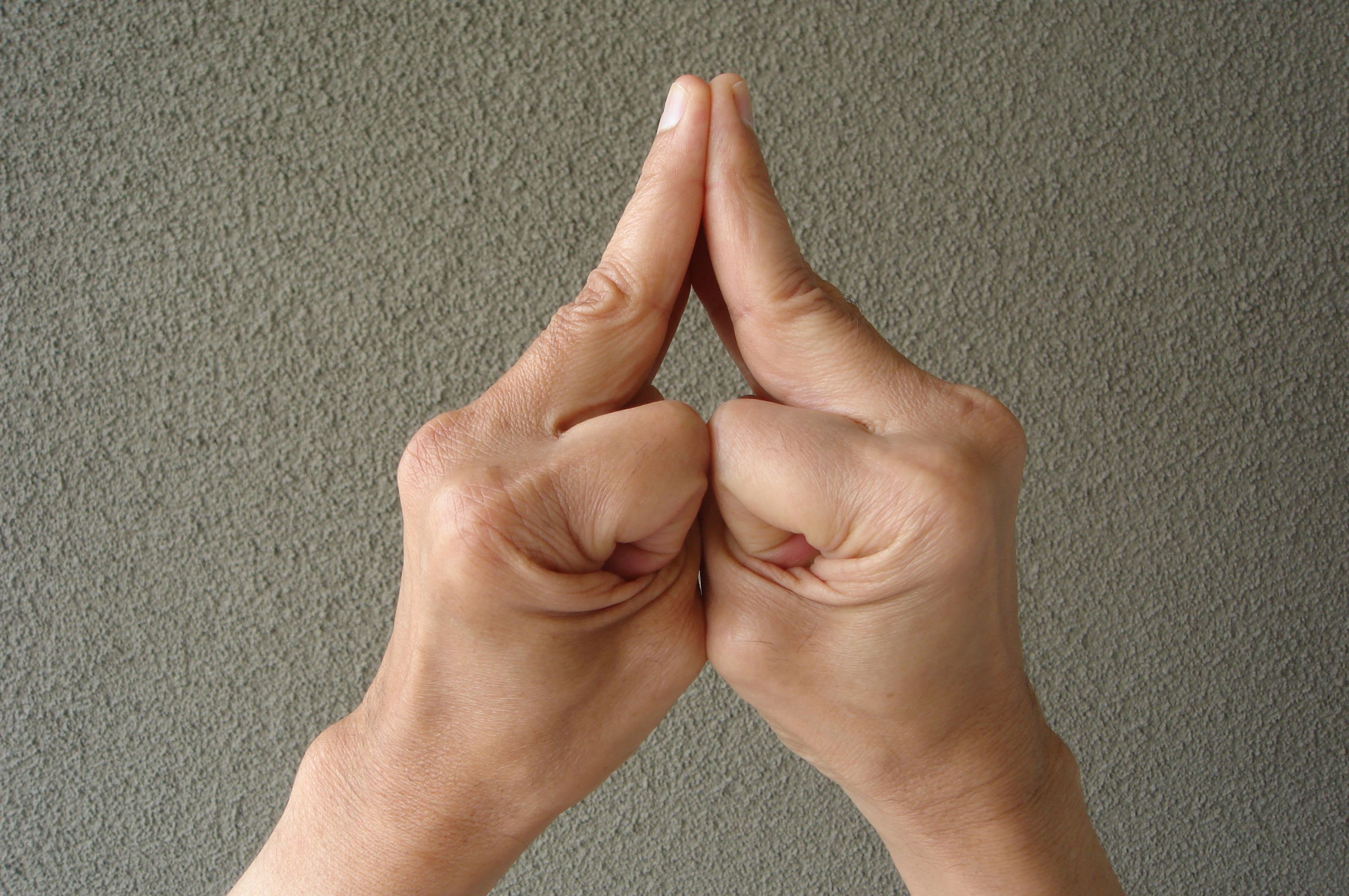 namastevariation the tips of the fingers touch the sides of the thumbs.