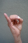 thumb while little finger is fully extended.