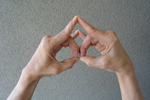 Tip of ringer finger touches tip of thumb. Sense: Smell.